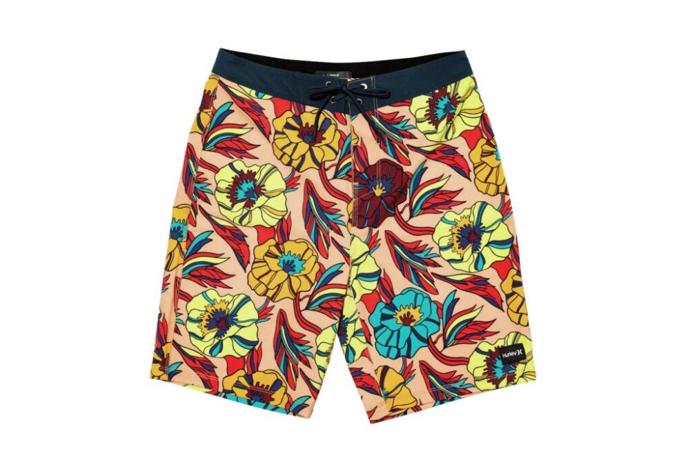 アロハシャツを思わせる花柄の総柄がオシャレなボードショーツ。アウトシーム20インチでやや長めのシルエットで街着としても使いやすい。8250円(オッシュマンズ新宿店TEL03-3353-0584)
