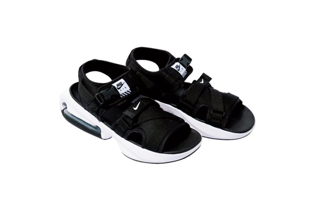足首側のバックルベルトと甲部分の面ファスナーベルトで、上下のメッシュアッパーを強固にホールド。ブランドアイコンでもあるビジブル エアが高いクッショニングを約束する、ハイテク仕立ての1足。9900円(ナイキ カスタマーサービス TEL0120-6453-77)