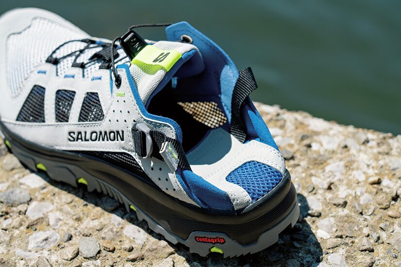 ファッションシーンからも高い注目を浴びるサロモンのウォーターシューズは、オールメッシュアッパーにトゥキャップを配したハイプロテクション仕様。かかとを潰してスリップオンでも着用可能。1万2100円(サロモンコールセンター TEL03-6631-0837)