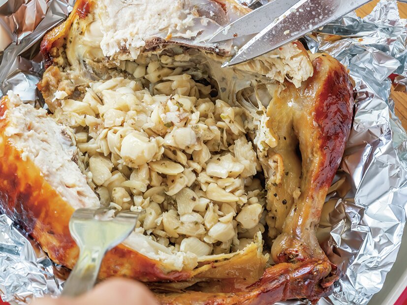 沖縄・浦添に若鶏の丸焼き専門店がある。毎日新鮮な若鶏を一羽丸ごとじっくりと焼くのだが、中にはたっぷりのニンニクと酢を加えた特製タレが入っている。見ためのボリューム感に身構えてしまうが、お酢効果で、ペロリと食べられるのだ。しかもニンニクの匂いもお酢の刺激もなく、後味もすっきり。ライスとの相性もよく、食欲が減退する暑い日にもおすすめの一品だ。お取り寄せもできるのでチェックしてみて。