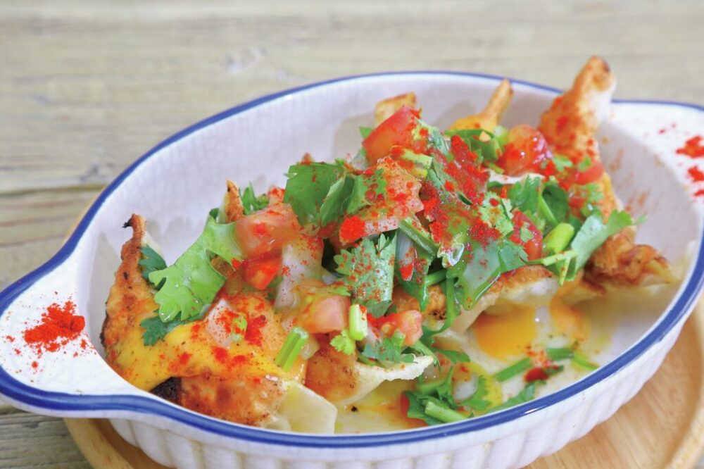 見た目では味の想像ができないかもしれないが、チーズとサルサとパクチーと餃子の組み合わせはかなりイケている!