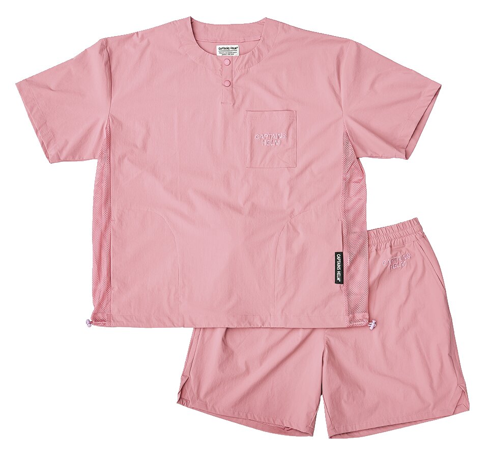 マットな質感に仕上げたリップストップナイロンを用いたセットアップ。撥水性があり、裏地にはメッシュを配することで快適に。トップス2万900円、ショーツ1万6500円