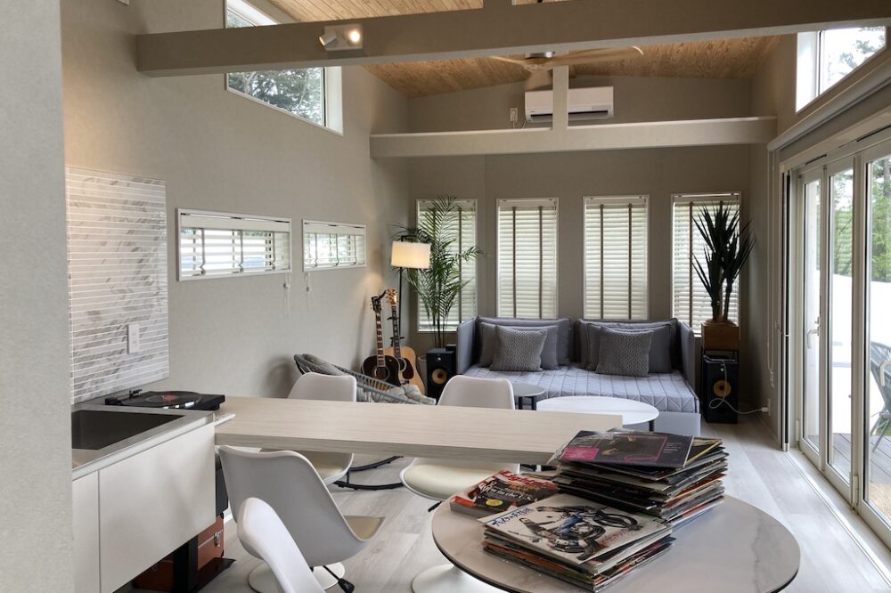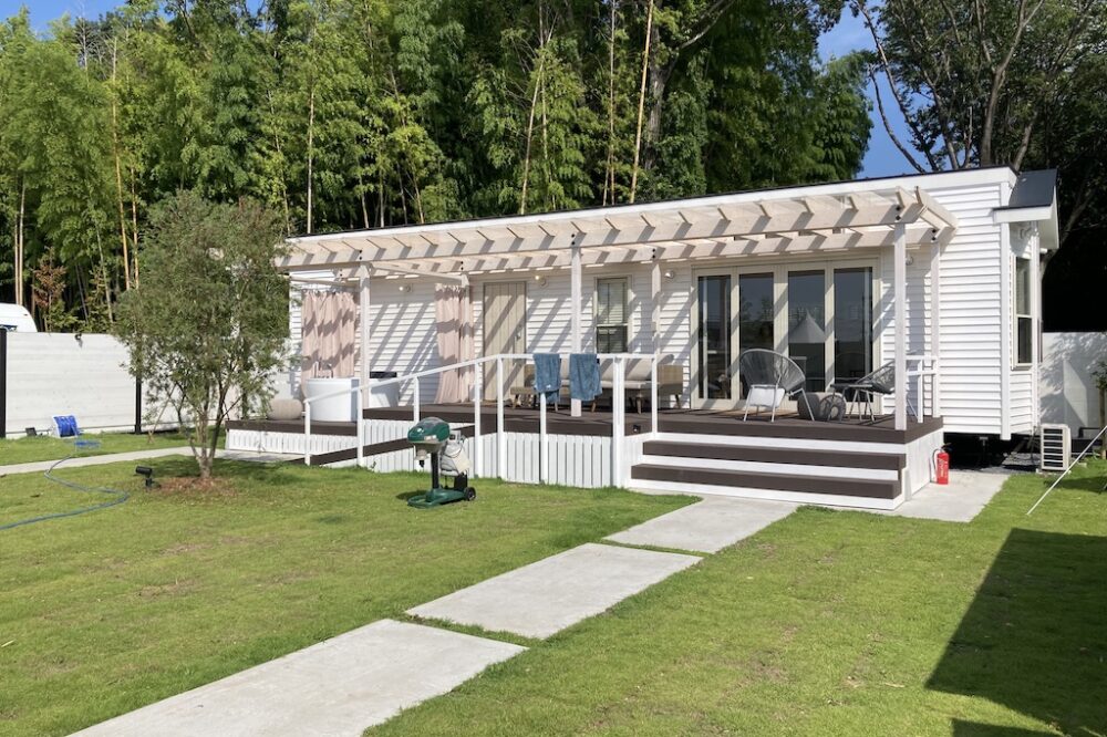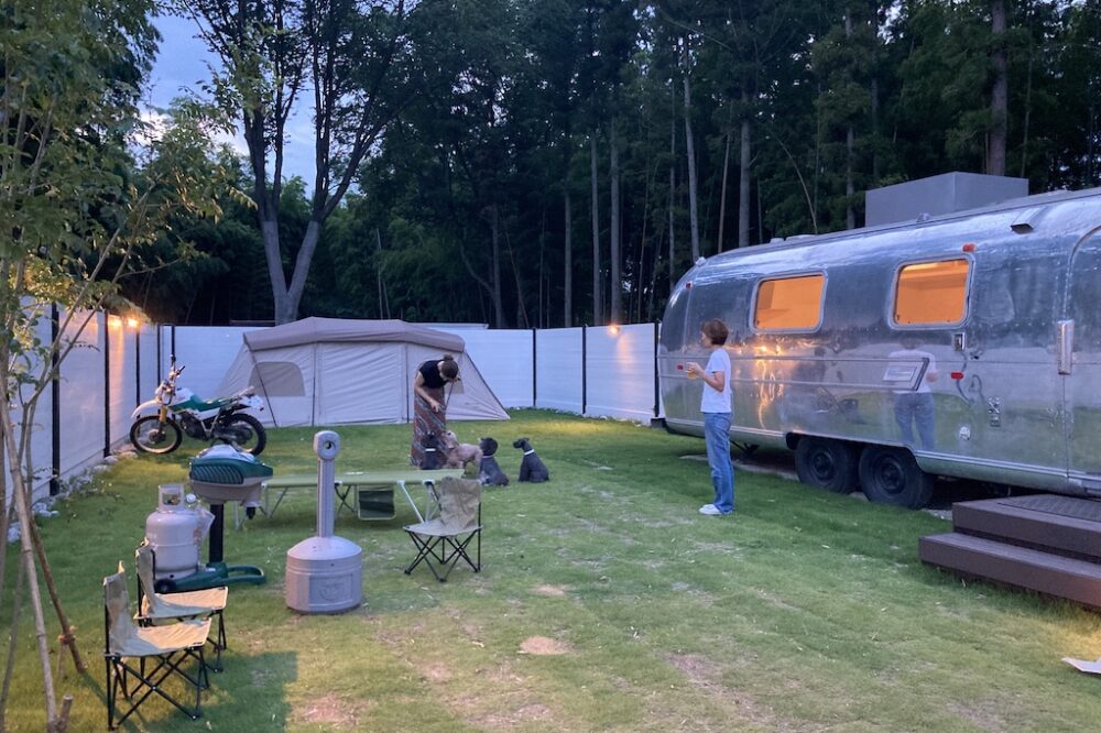 これは1区画ごとにコンセプトの違うサイトが8棟存在。室内から外まで愛犬が自由に行き来できるだけでなく、愛犬とノーリードで過ごせるアウトドア体験をしたいという愛犬家たちの思いを実現させてくれる施設になっている。