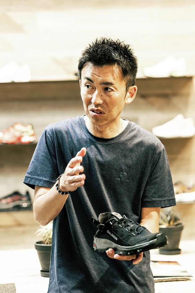 数々の世界的な人気ブランドとコラボするなど、ファッションシーンでも大注目のサロモン。そのシューズのラインナップは大きく分けると2つあり、トレイルランニングとハイキングを中心としたメインのラインと、そこで培ったテクノロジーやデザインを駆使してファッション的なアプローチで展開するスポーツスタイル。そんなラインナップの中からオススメのモデルを、スペシャリストの菅谷さんに聞いた。