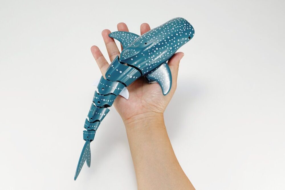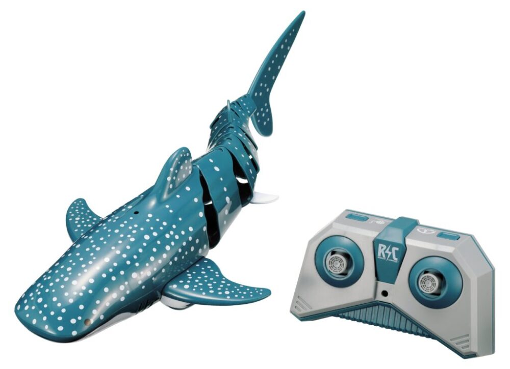 胴体を動かしながら水中を進むジンベイザメ型のRC。電波は2.4GHz帯なので、他のRCと混信することはない。電源スイッチはなく、着水すると本体のセンサーが感知して電源が入る仕組みだ。3988円(amazon価格)
