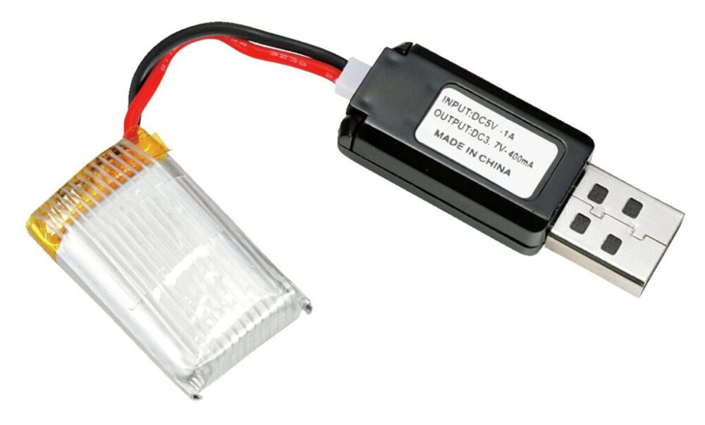 本体のバッテリーは付属のUSBチャージャーで充電する。約60分で満充電となり、約20分の稼働が可能だ。