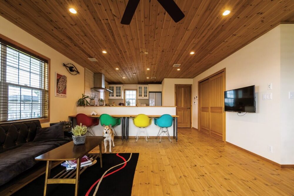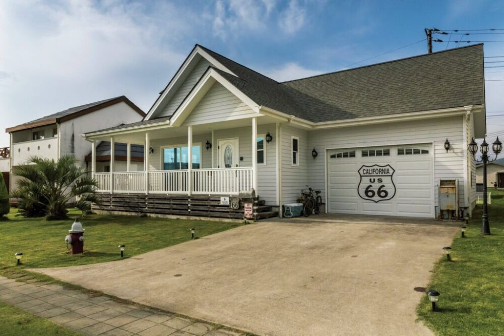 千葉の街中に住んでいたという笠松さんが、南房総の空気の良さと海が近くにある環境に惚れ込み、今から8年前にこの場所に土地を購入。その1年後に完成したのがこの大きなビルトインガレージを併設したアメリカンハウスだ。