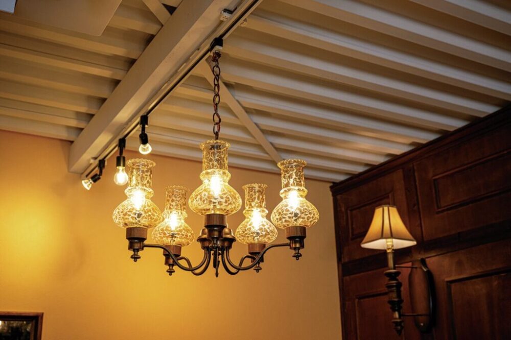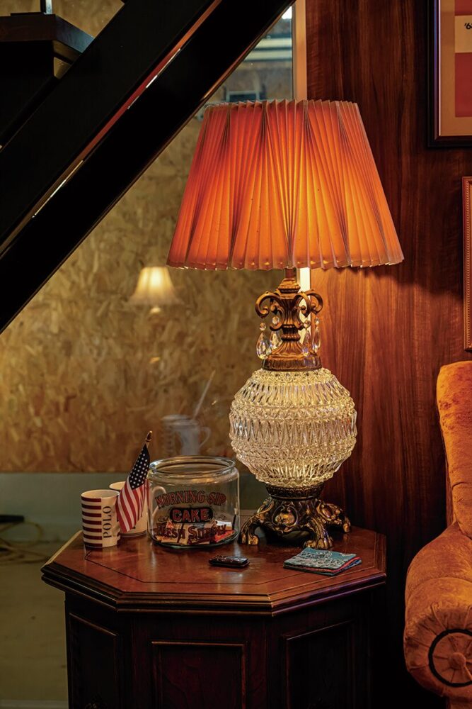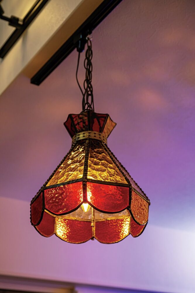 「自分は良いなと思ったらすぐ買っちゃうくらいランプ好きなんですよ。それこそ個人輸入してしまうくらい。だからそこを主役に家具を配置しました。黄色っぽい灯りが好きなので、ゴールドやベージュ、ブラウン系でまとめながら差し色にレッドを持ってくる感じですかね。