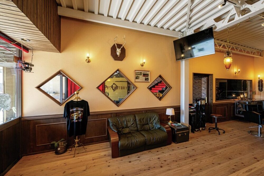 昨年念願のアメリカンハウスを完成させた山口さんだが、その数カ月後にオープンさせたのが、自身のこだわりが詰まった美容室、ワイズファクトリーだ。