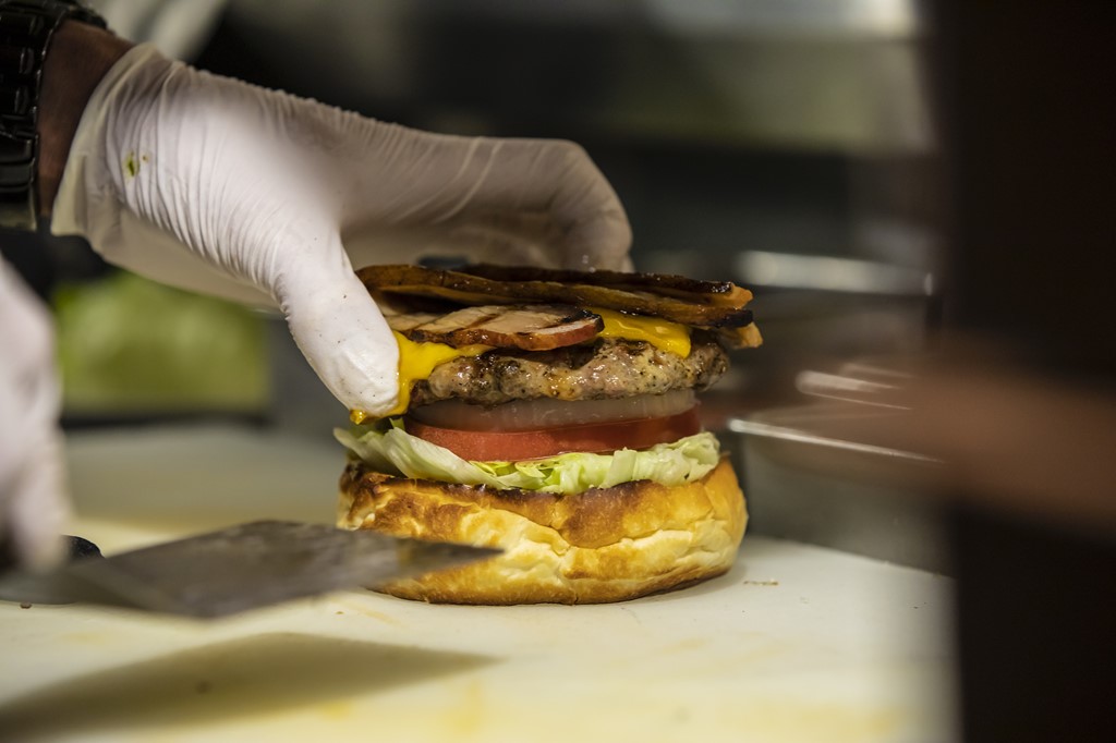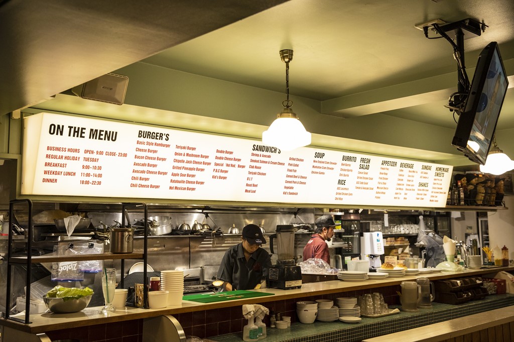店長の飯田さんいわく「ハンバーガーは、うちのよさを一番感じて頂けるもの。見た目のインパクトや味はもちろん、大事なことはアメリカの雰囲気、世界観で召し上がって頂くこと。旧きよきアメリカの世界と共に、味わってほしいと思っています」