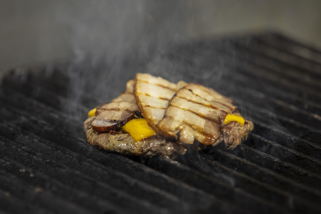 メキシコ産のクロットの一番おいしい赤身部分を、直火のグリルで焼き上げる。アメリカらしい世界観を出すためにはタワーのインパクトも重要となる。