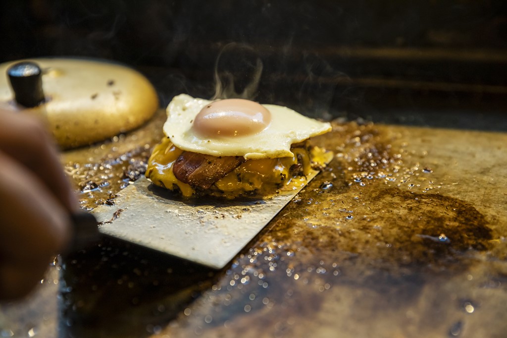 今では徐々に評判が広がり、千住の本店の他に、計5店舗展開する。そんなサニーダイナーの看板メニューのひとつがサニーバーガー。高級なすき焼き等でも使われるサシのはいった上質な手捏ねビーフを使用し、毎朝市場から仕入れるこだわりの野菜。それでも比較的リーズナブルな価格帯なのは、なるべく無駄を出さない調理方法を工夫しているから。