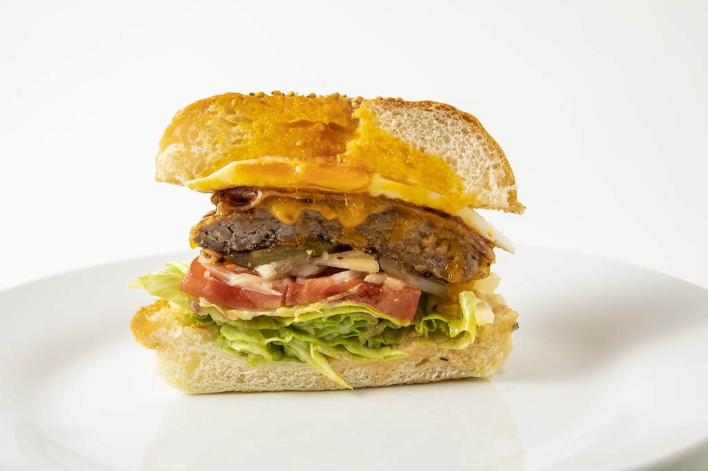 すき焼きなどに使われるサシのはいった上質な和牛がベースのパティ。バンズは極限まで時間かけて発酵させているので、ふわふわで軽いの特徴だ。ソースは自家製タルタルソースを使用。パティは1枚~3枚と選べるのも嬉しい。1800円~