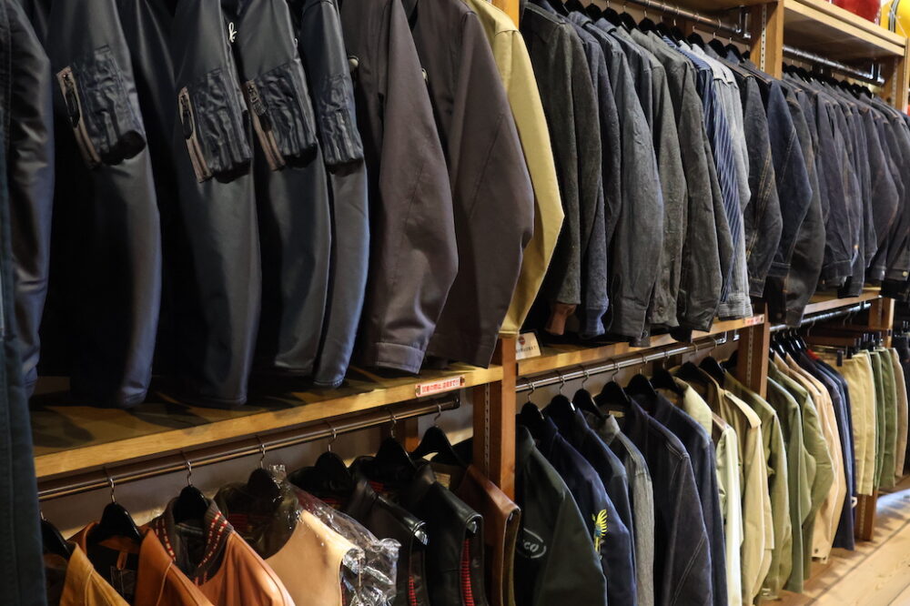 取り扱うブランドはザ・リアルマッコイズ、フェローズ、フルカウント、ウエアハウス、ドゥニーム、サムライジーンズ、デラックスウエア、ワイツーレザー、クッシュマン、ウエス、ファーストアローズ、ウエスコ、ホワイツブーツ等、ここに挙げただけでも、その幅広いセレクトがうれしい。