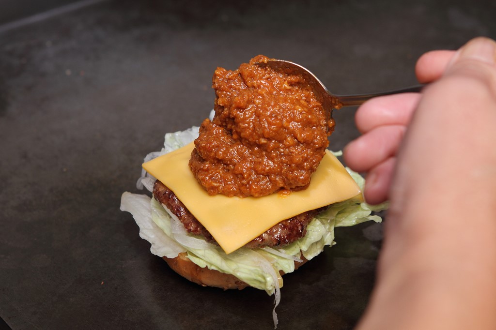ただし、この店のミートソースがイタリアンのラグーと違うのは、ハンバーガーの味を際立たせるために、スイートチリソースを隠し味に使っているところにある。だから後味が若干甘いのが特徴。