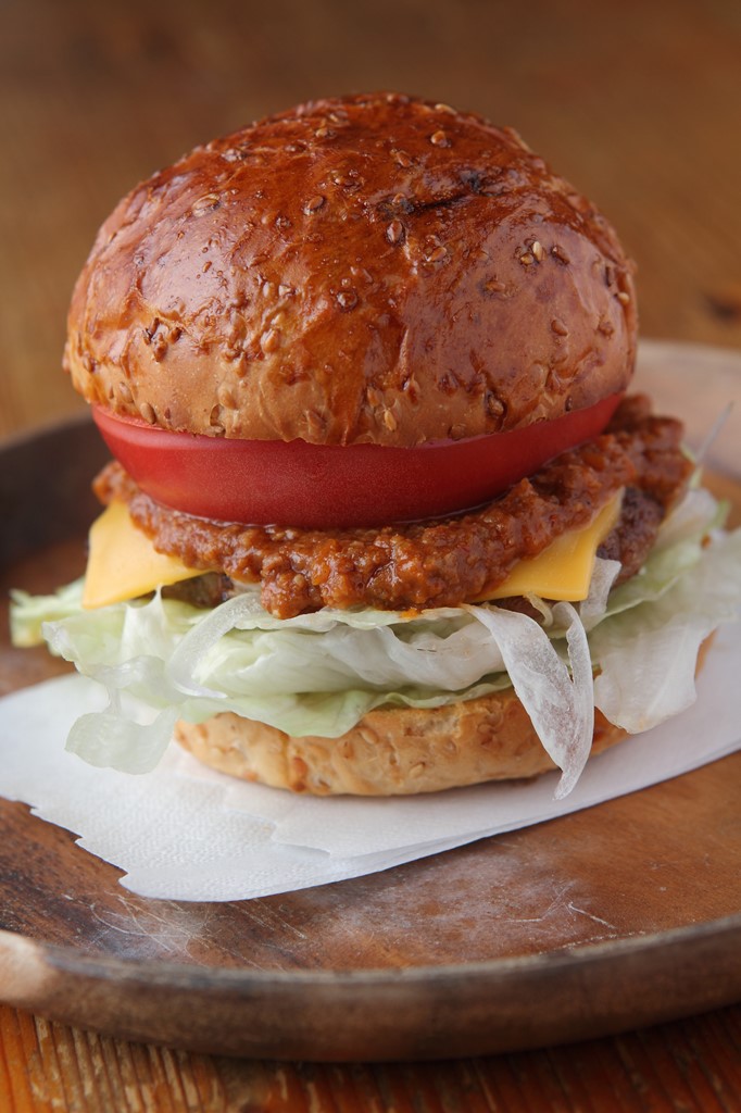 店の名を冠したハンバーガーがある。牛肉100%のパティにチェダーチーズをのせる。その上に自家製ミートソースがかかっている。イタリア料理でいうところの、ラグーである。まさかバーでミートソースを作っているとは。
