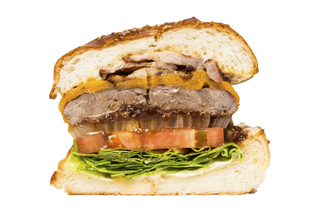 天然酵母使用の特注バンズを250度のオーブンで焼き上げ、パティは牛肉を9mmと12mmで切り分けて独特の食感を生み出しているのが特徴。自家製BBQソースに加え、上下バンズにマヨネーズを使用。ベーコンはオリジナルレシピで塩漬け、燻製した自家製とこだわりがスゴイ! 1780円