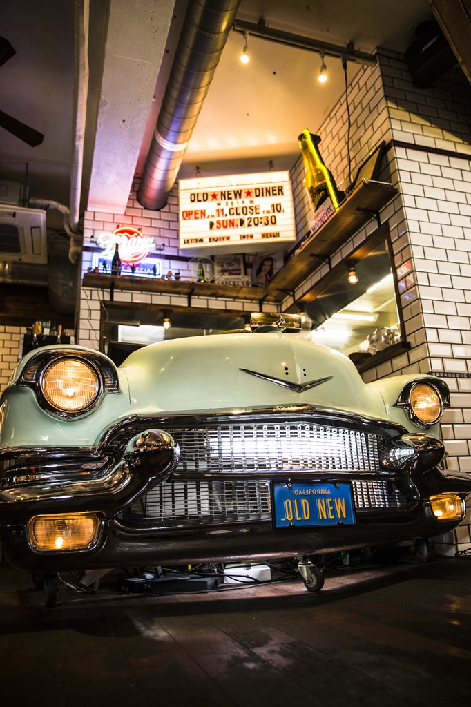 駒沢の老舗ハンバーガーショップで修行したオーナーが立川でオープンしたオールドニューダイナー。1950~’60年代のアメリカのダイナーをイメージした内装で、ネオンサインの看板や’50sのシボレーやキャデラックなどを模したオブジェが店内や外観にも設置され、オーナーが愛する旧きよき時代のアメリカンカルチャーが感じられる。