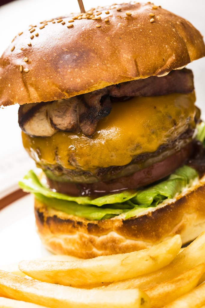 ベーコンとビーフ100%のパティを併せ持つジューシーなバーガーは食べ応え抜群。そして、味の決め手となるのは自家製の甘めのBBQソース。すべての具材にこだわったホームメイドの味わいが同店の魅力だ。