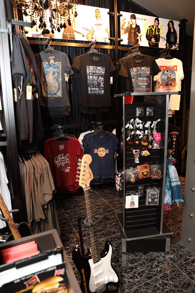 ハンバーガーをたっぷり堪能した後は、カフェに隣接するロックショップで定番ロゴのTシャツを手に入れることを忘れずに。