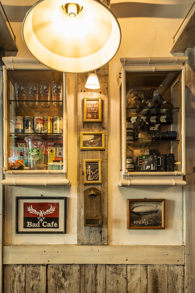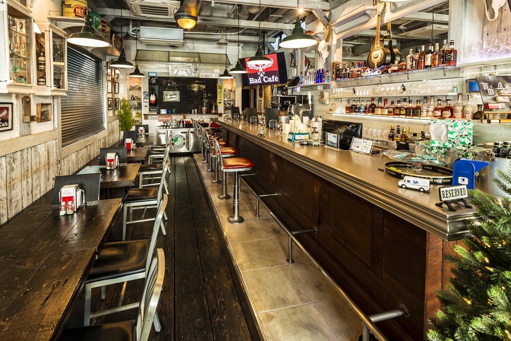 東京都墨田区押上は、2012年、スカイツリーが竣工されて以来、東京の観光名所としてメジャー入り。しかし、一歩、路地裏へ抜けると下町風情、そして住宅街の景色が広がる。その住宅街にアメリカンアンティークのインテリアと大型モニターから流れるロックの音色が心地よい空間を作り出す旧き良きアメリカンダイナーを演出した「バッドカフェ」がある。