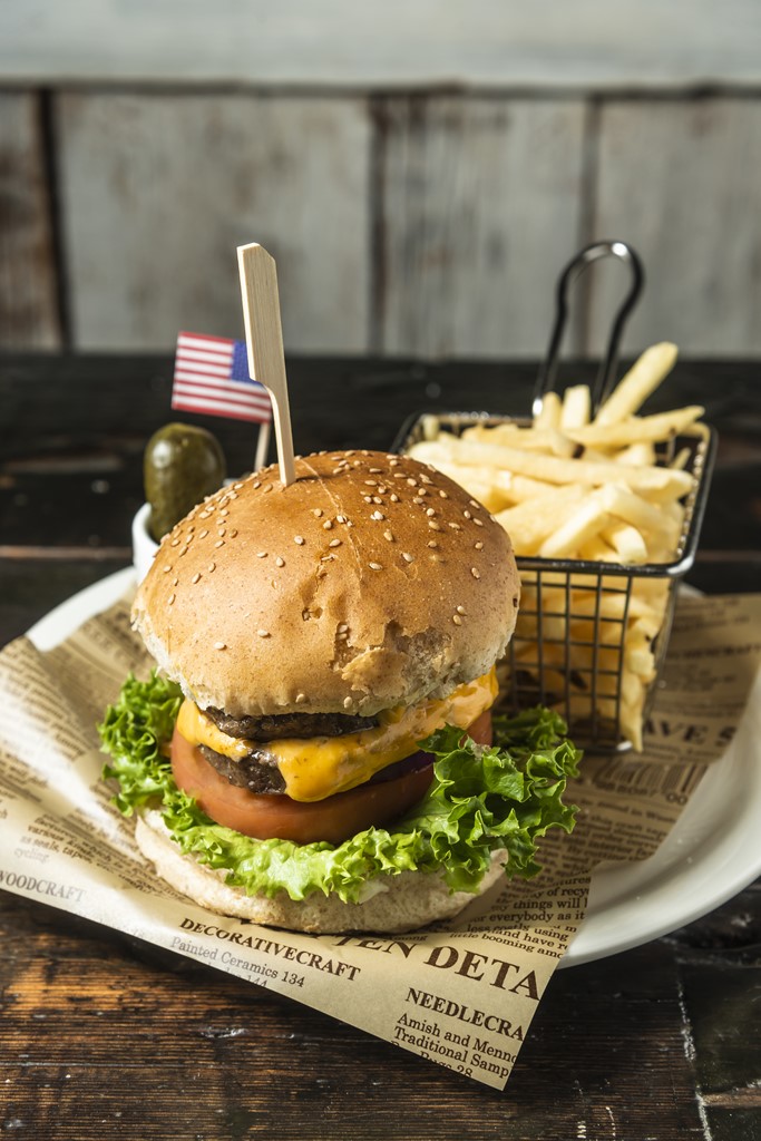 国産小麦を使用した無添加・無着色バンズにUSビーフ、そしてレタス、トマト、レッドオニオンとオーソドックスなスタイルななかに、肉と野菜の旨みを感じられる逸品。とろけたチェダーチーズがいい仕事をしている。