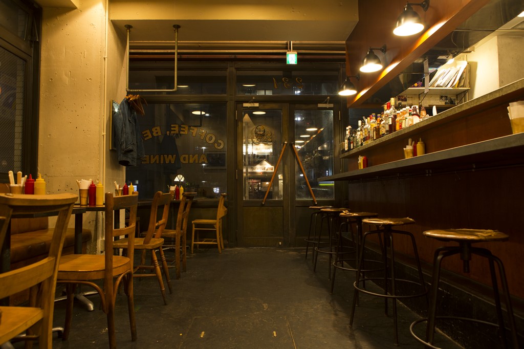 表参道ヒルズにも店舗を構える、東京のハンバーガー界を牽引してきた「グリルバーガーの走り」とも言うべき名店。サインペインターNUTS ART WORKSのペインティングが施されたファサードは、異国情緒な雰囲気を漂わせている。