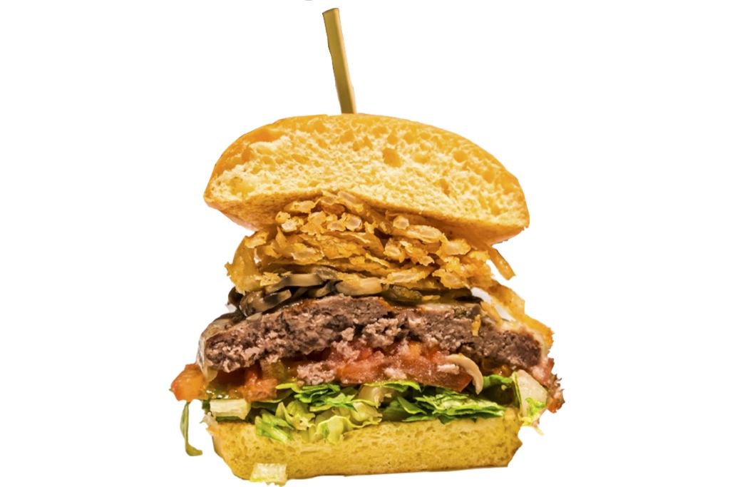バター多めでしっとりと甘みと風味のある特製バンズに、オールナチュラル(生育する上でホルモン剤不使用)のオージーアンガスビーフのパティを合わせた。そのほか、ソテーマッシュルームやプロボローネチーズ、オニオンフライ、トマト、レタスをトッピング。1790円