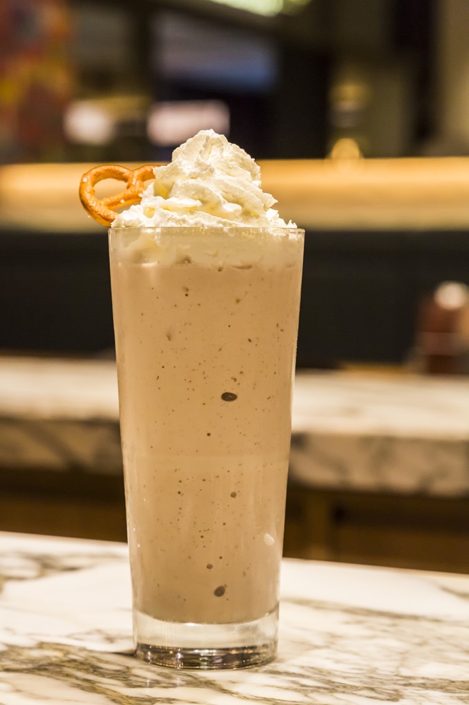 カウンターバーガーで人気のドリンクが、ヌテラチョコレート&プレッツェルのシェイク(990円)。