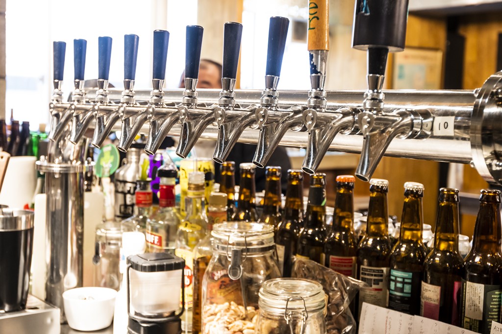 クラフトビールのビアパブのため、タップで美味しいビールがいただける。ハンバーガーと一緒にいただきたい。