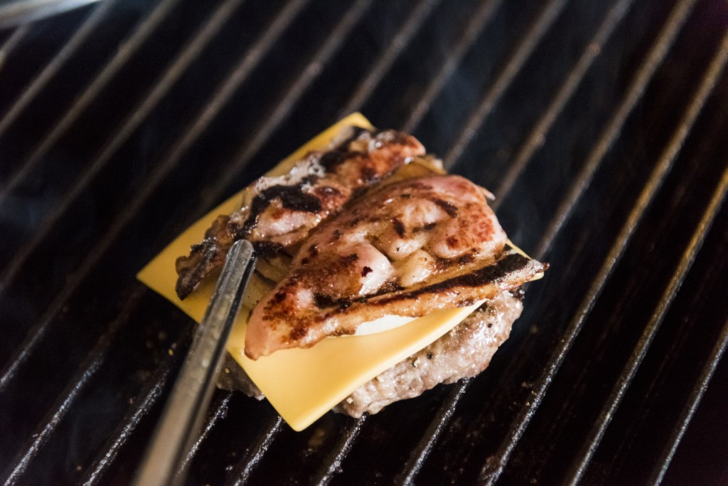道産小麦を使用し、通常より濃い色に焼き上げたバンズ。オージー、US、道産牛の3種類をブレンドしたパティにカリカリのベーコンと濃厚なチェダーチーズ、サクサク食感のオニオンリングを加え、自家製BBQソースをたっぷり入れた人気No.1バーガー。