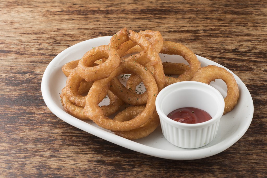 2人でシェアするのにちょうどよい量のオニオンリング。ウエスタンBBQバーガーの中にも隠し味として入っている。食感がアクセントになりコクが増す。