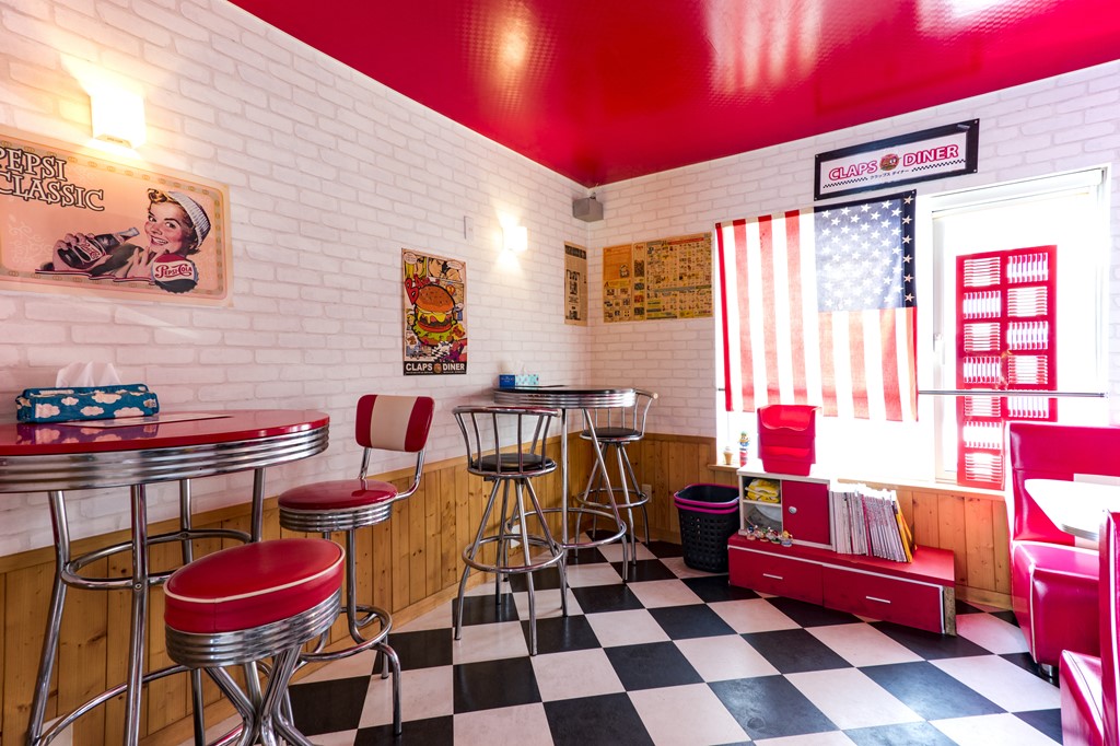赤と黒と白を基調としたアメリカンダイナー。