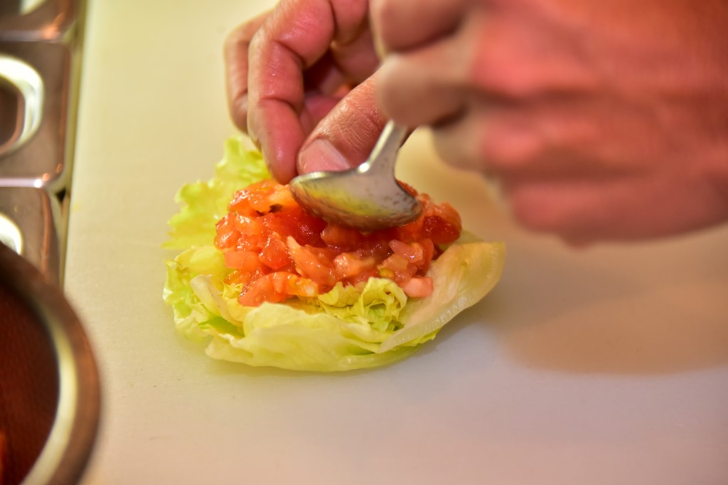 ARMSではスライストマトではなく、全体のバランスよさを考えてクラッシュトマトを使っている。