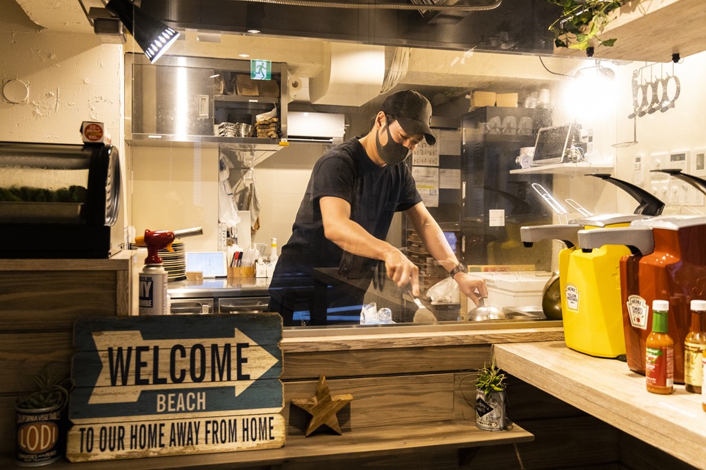 店に入ってすぐのところにオープンキッチンがある。パティが焼けるいい香りが、店内だけでなく店の外まで漂っている。