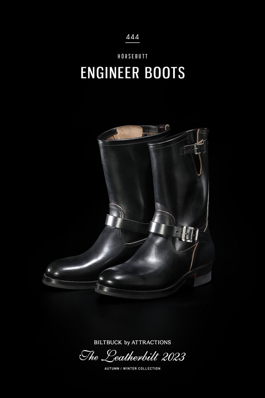 「アトラクションズ」が手掛ける「ビルトバック」。ブランドを代表するアイテム、エンジニアブーツやレザージャケットがラインナップ。当日はイベント限定スペシャル企画を予定。https://attractions.co.jp/collections/biltbuck