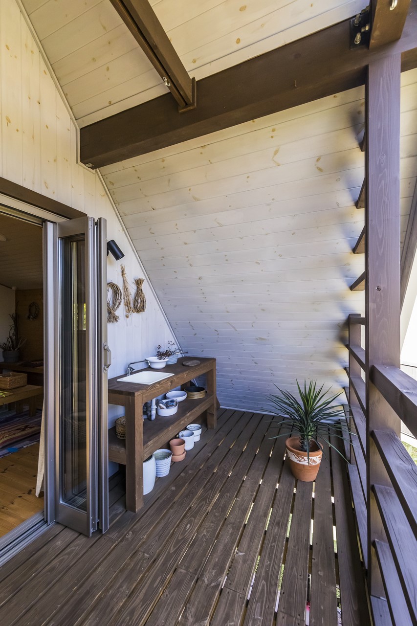 空に向かう伸びやかな三角屋根が魅力のGログ。この屋根のおかげで、2階部分の天井が高く、開放的なのが人気の秘密だ。このGログの最大の特徴、それは2階に設けられた広いベランダ空間「NIDO(ニド)」。ただ洗濯物を干すんじゃ、あまりにもったいない。ここで食事をしたりお茶を楽しんだり、自分なりの過ごし方を見つけてみてはいかがだろう。