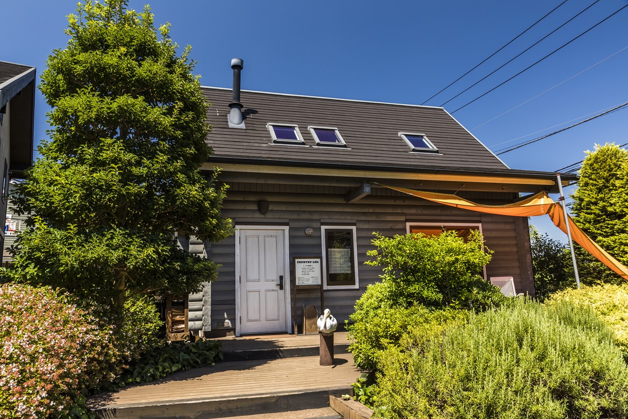 アメリカの片田舎に建つ家のような、「ログハウス然」とした佇まいが魅力のカントリーログ。玄関を一歩入ると、そこに広がるのは、広大な土間空間。ここをどう使うか、がポイントとなる。趣味の自転車の整備をしてもいいし、アウトドアギアのメンテに興じるのもいい。ここでヨガなんでのもいいかも!