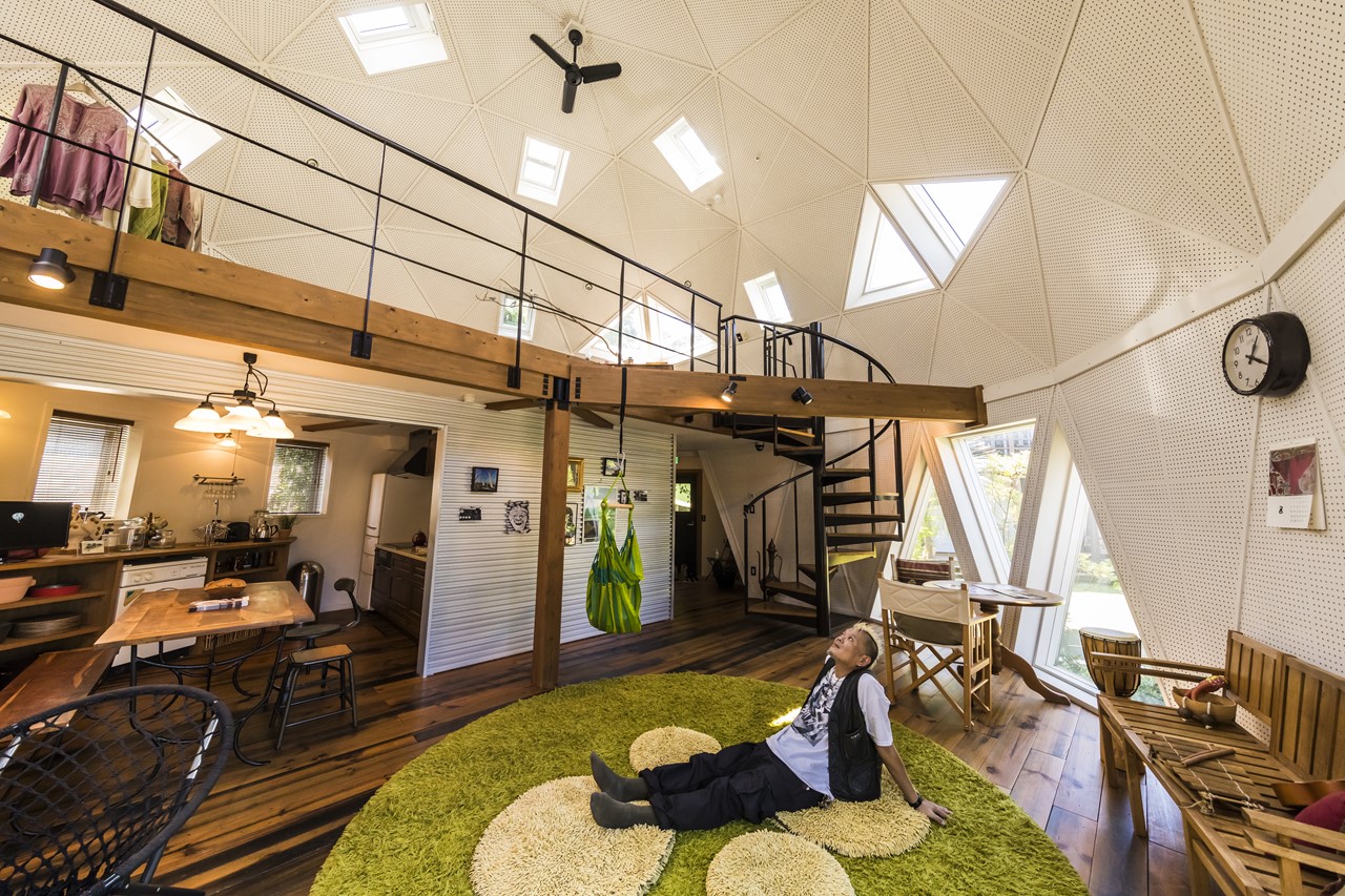 家は四角いと誰が決めた! そんな挑戦的なメッセージを発するかのような個性的なモデル、それがBESSドームだ。三角形を組み合わせた球体で、強度的にも非常に高い構造となっているのが特徴だ。柱もなく、空間の使い方も自由自在だ。音も反響するのでオーディオを趣味とする人にも人気が高いという。この「秘密基地感」、たまりません!