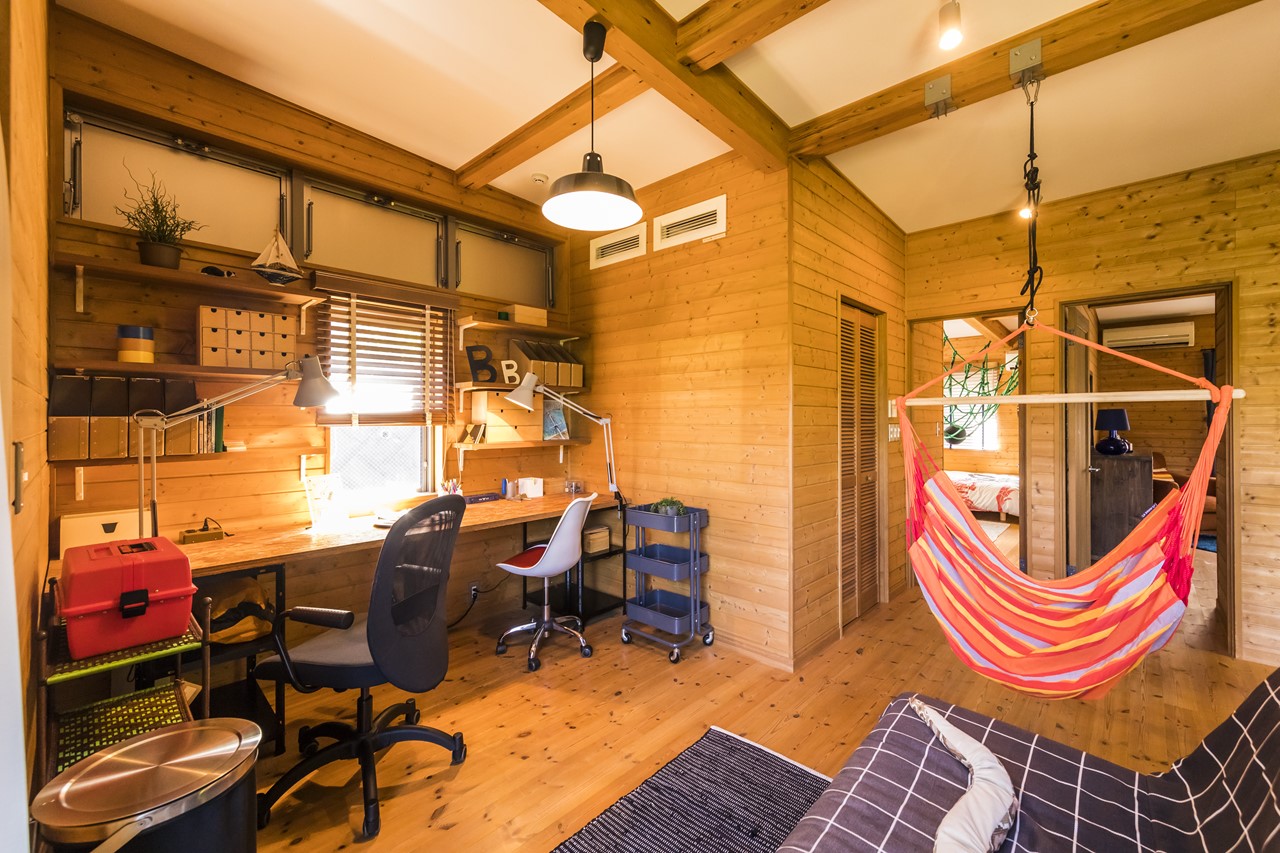 玄関の土間空間を書斎に使ってもいいし、広いベランダをオープンテラスのように使うのもアリ。すべては、住まう人の遊び心にかかっているのだ。ここに来れば、きっと色々夢想してしまうに違いない。男の妄想をさらに加速させる夢のようなパラダイス、それがLOGWAYなのだ。