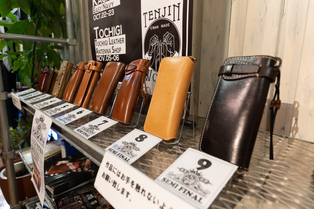 今回のポップアップイベントは二本柱。多くのサンプルを実際に手にとって見ることだけでなく、自分のサイズはもちろんのこと、好きなカラーでオーダーできるオーダー会や、毎年天神ワークスが開催しているA-1グランプリの関西地区の予選会場としてろーぐすが選ばれ、ここで参加者たちの自慢のエイジングアイテムがそろう予定。まさにレザー愛好家にとっては貴重な3日間になることは間違いない。