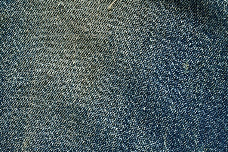 一般的に旧いデニムほどムラ糸を使って織っているため、生地に凹凸感があって粒状の縦落ちになる。生地感がゴツくて色落ちしても迫力がある。’80年代以降は縦落ちせず、モサっとした色落ちで、淡い色合いが楽しめる。