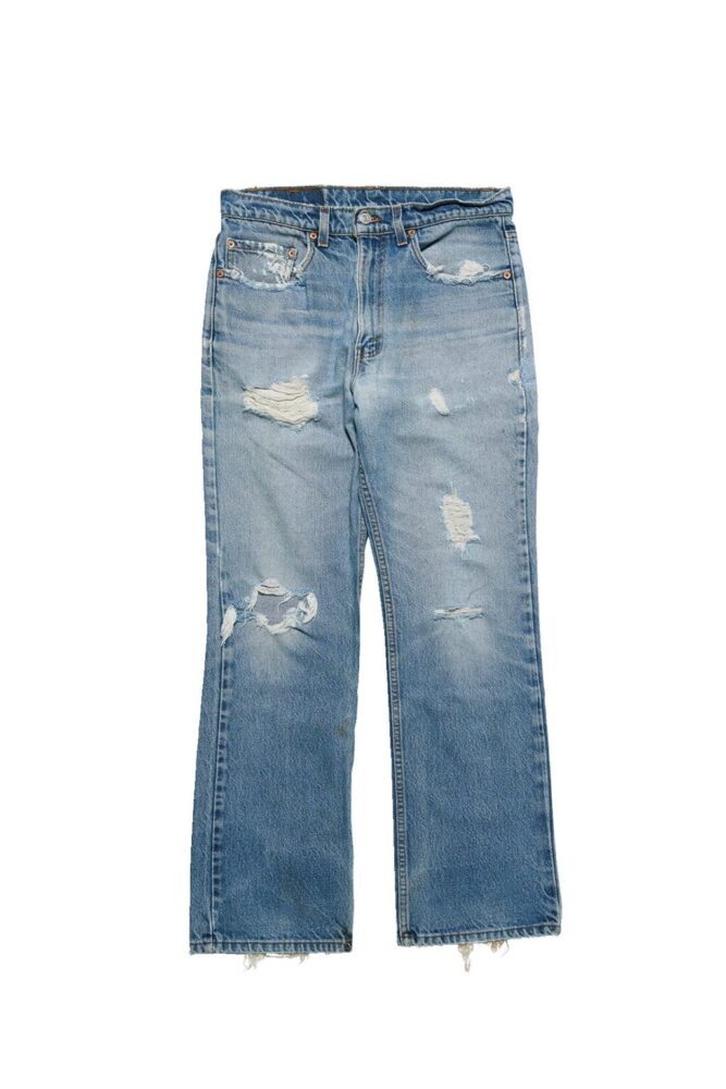 こちらは’98年製の517だが、腿と膝のダメージ、色抜け感があるので風合いはかなりいい。8800円(ミスタークリーン TEL090-2206-1755)