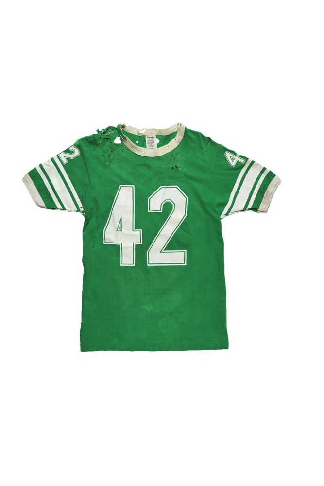 THE Owenyというブランドのおそらく’70年代製。胸と背中、両袖に42のナンバリングがプリントされた珍しい1卓。褪色具合もさることながら、ダメージも雰囲気がある。白Teeに重ねて楽しみたい。1万7380円(ガソリン TEL03-6454-6310)
