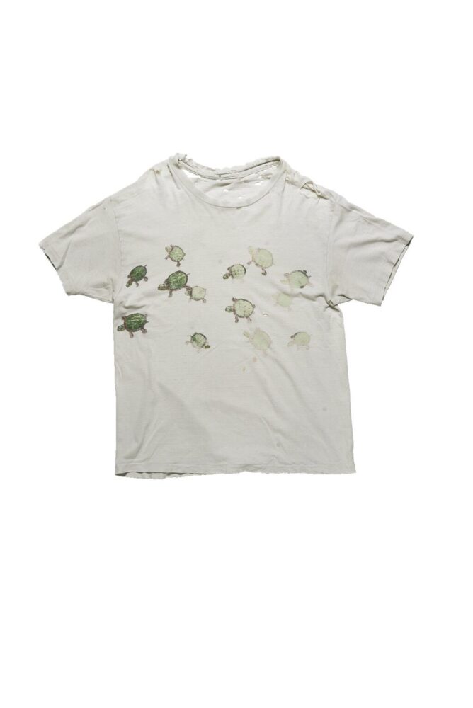遠目からだとダメージにも見えるが、実はこれらは亀のプリント。’90年代頃の1着で、首周りのダメージとプリントの雰囲気が絶妙にマッチしていてすごく佇まいがイイ。8900円(ダートビンテージ TEL03-4361-9941)