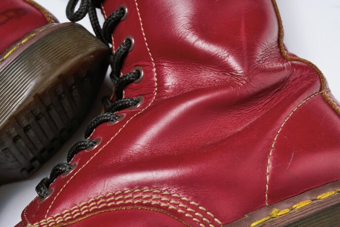 アメリカものとは一味違うエイジングを楽しめるドクターマーチンの名作8ホールブーツ。顔料が剥がれたようなワイルドなエイジングで、貴重なイングランド製である。1万8700円(シック 電話番号非掲載)