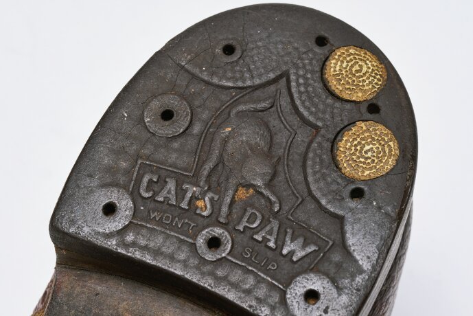 ’50年代らしくセパレートソールやスチールの入らないトゥなどの意匠も魅力。茶芯のブラックレザーがいい感じにエイジングされており、まさに理想的な表情となっている。14万800円(フェイク アルファ TEL03-3404-0168)