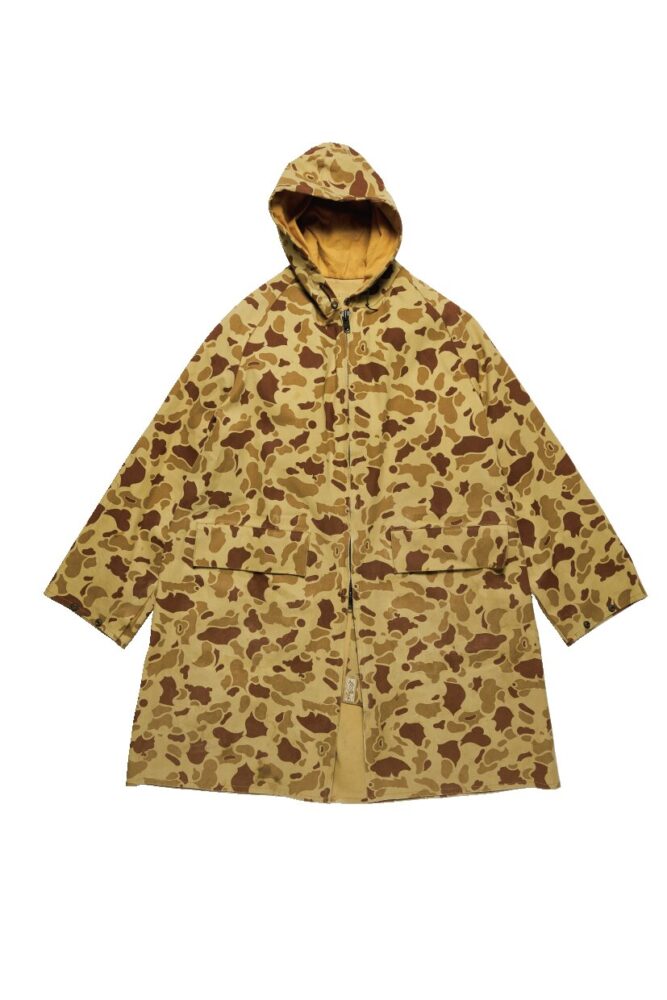 筆記体ラベルが付く1着だ。ダックハンターカモフラージュ柄で、ゴム引きの帆布素材が使われている。3万3000円(CA.TEL03-3313-1710)