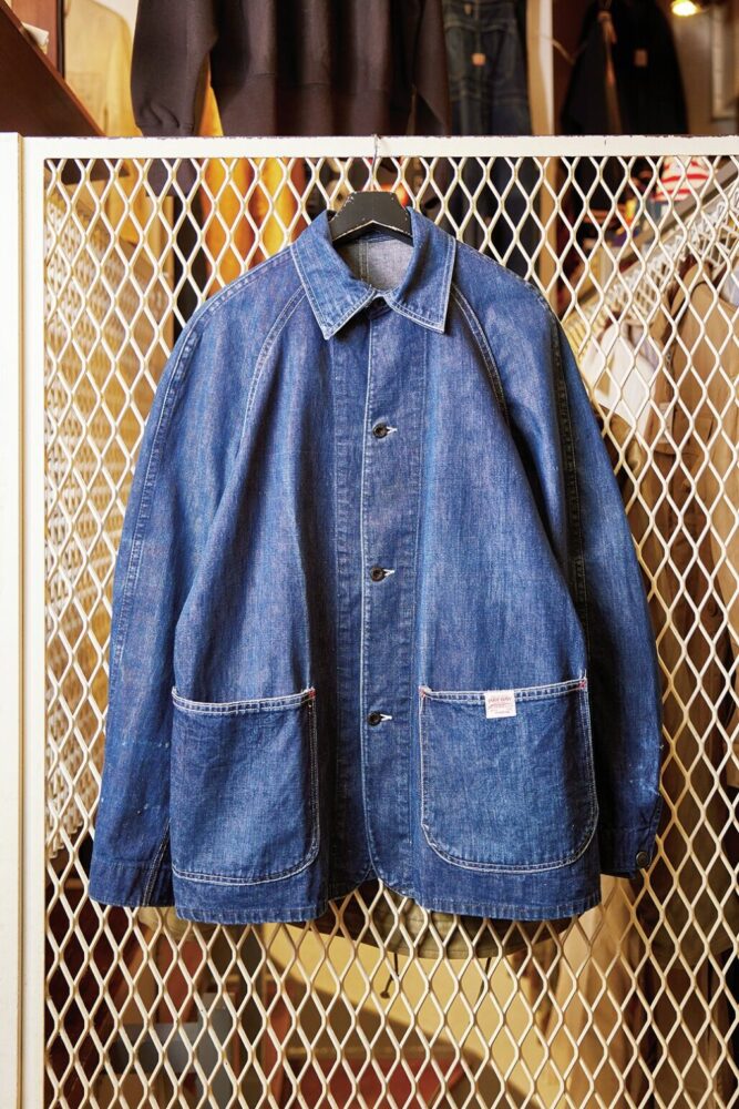 第二次大戦中に製造されたペイデイのカバーオール。ポケット数と月桂樹ボタンは物資統制下の貴重な名残り。39万3800円