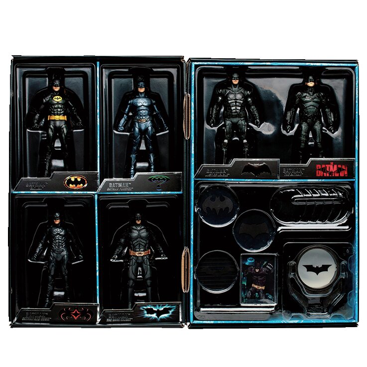 映画6作品のバットマンをそれぞれ全高約18㎝、約22箇所が可動するアクションフィギュアとして立体化。どれも造形や質感にこだわり、細部に至るまでマクファーレン・トイズらしく徹底的に再現されているのがポイントだ。